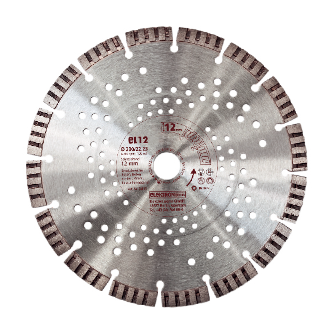 Discover the El12 cutting disc from Elektron Berlin now! It offers you fast and precise cutting of natural stone, artificial stone, granite, concrete, brick and ceramic. The cutting blade is extremely robust and durable, making it ideal for use in industry, trade and construction. See for yourself and benefit from our attractive prices!