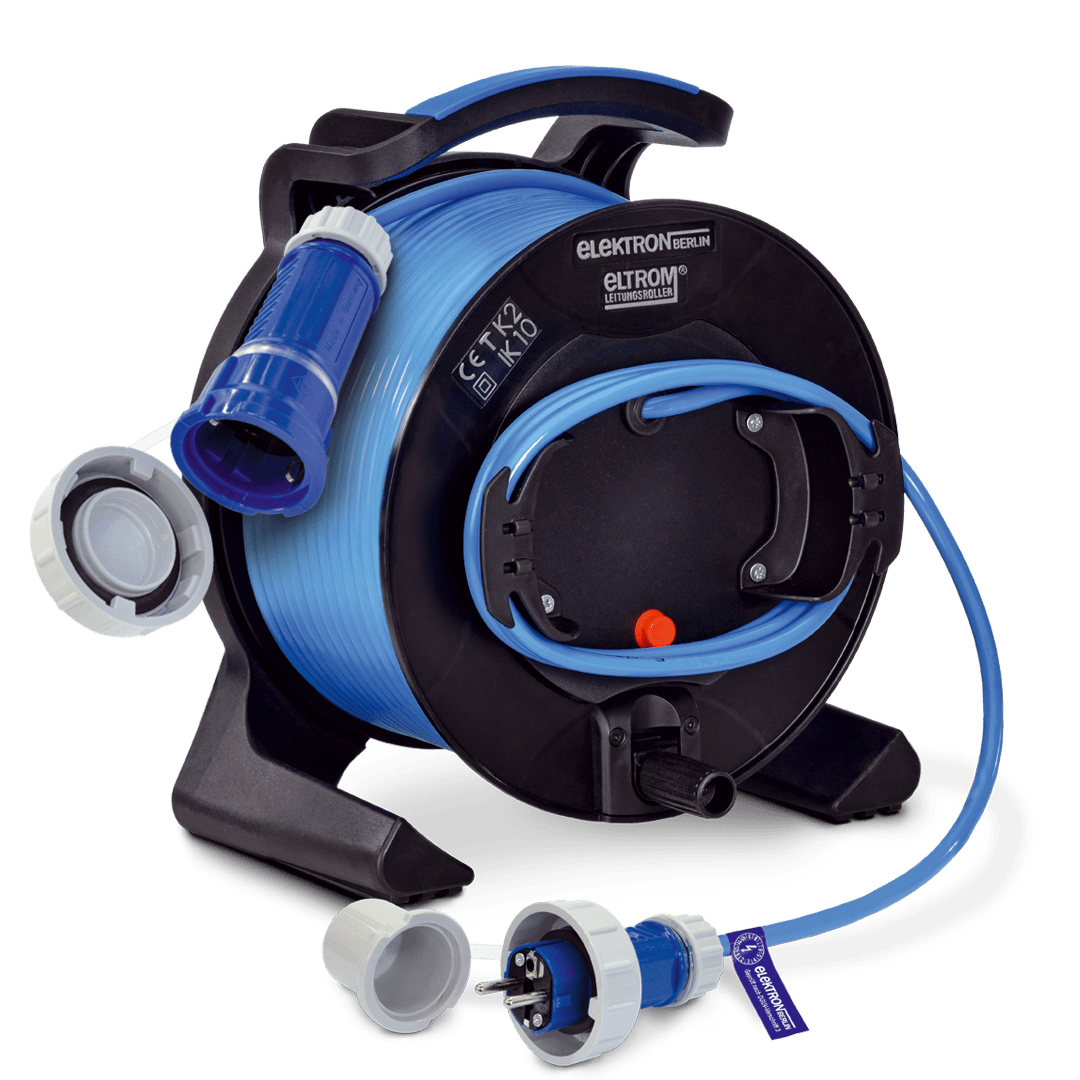 Our Cable drums / Scaffolding reels have been specially developed for the professional sector and are therefore extremely robust and low-maintenance. ELTROM®2 310 IP55 scaffolding reels are used in construction, trade and industry. Equipped with water pressure-tight / waterproof protective contact plugs, 5 signal colors for cable, 30 m / 40 m / 50 m.