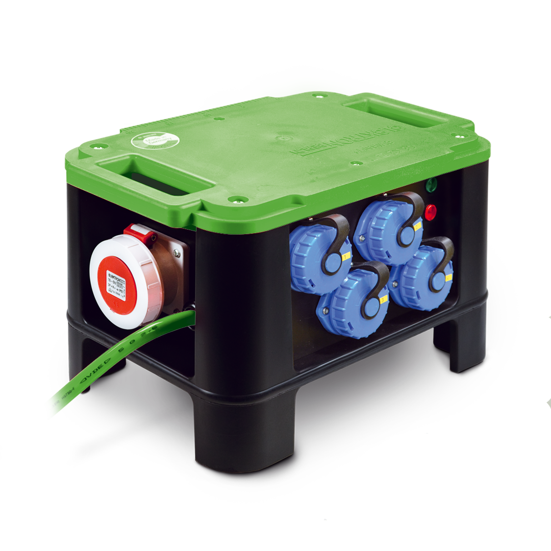 - 4 prises de courant à contact de protection étanches à l'eau sous pression 16 A / 250 V (IP68)