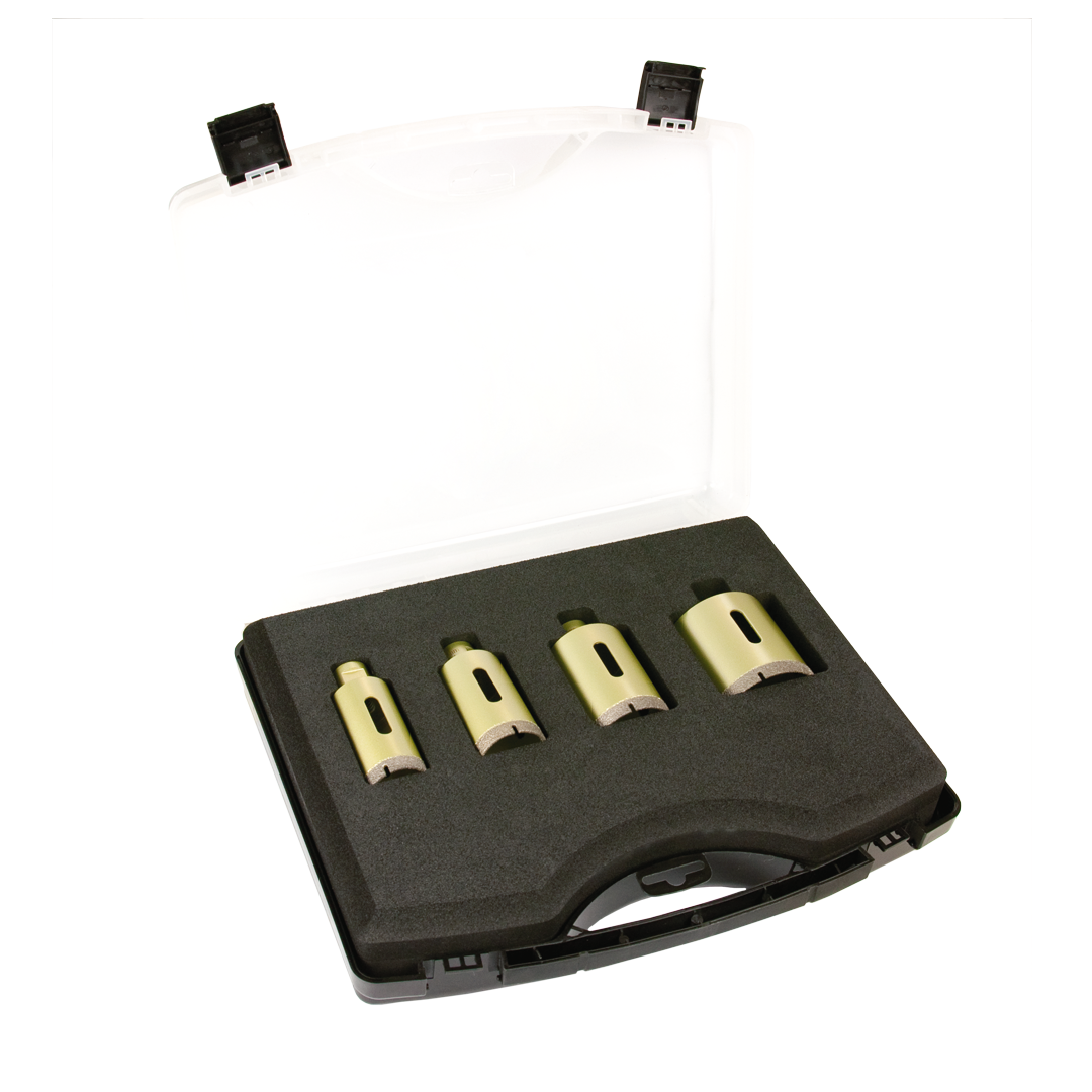 - Jeu de 4 couronnes de forage avec couronnes de Ø 35, 40, 50 et 68 mm