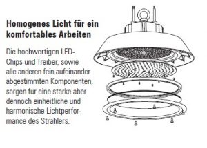 - LED-Hallentiefstrahler mit hervorragender Leuchteffizienz
