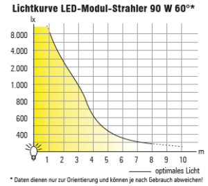 - Lichtstrom nach fünf Jahren garantiert noch mindestens 90 % des Anfangswertes